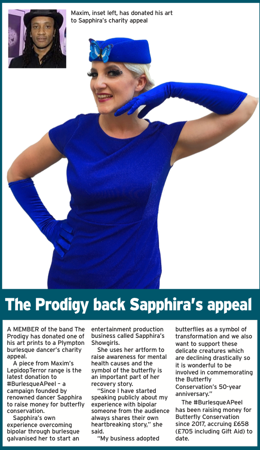 A generous donation from Maxim has been auctioned by Butterfly Conservation for their 50th Anniversary as part of Sapphira’s fundraiser #BurlesqueAPeel. To date #BurlesqueAPeel has raised £1,560 (£1,851 including Gift Aid.)